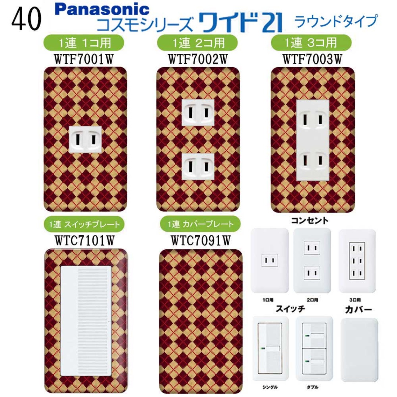 チェック柄 40番 パナソニック 【コスモワイドシリーズ21】1連 コンセントプレート スイッチプレート
