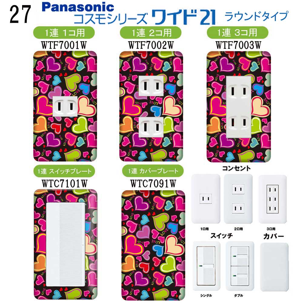 ハート柄(カラフル柄) 27番 パナソニック 【コスモシリーズワイド21】 1連 コンセントプレート スイッチプレート
