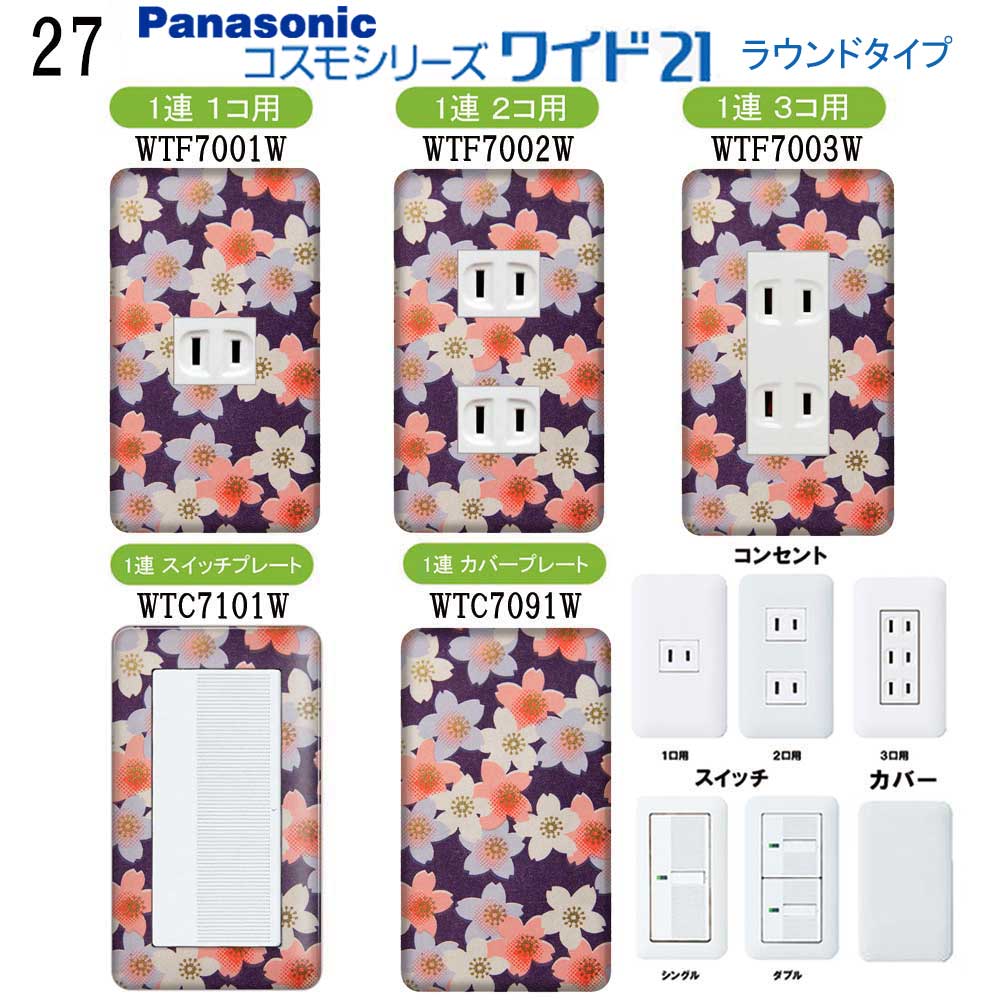 和調柄(和柄 日本風柄) 27番 パナソニック 【コスモシリーズワイド21】 1連 コンセントプレート スイッチプレート