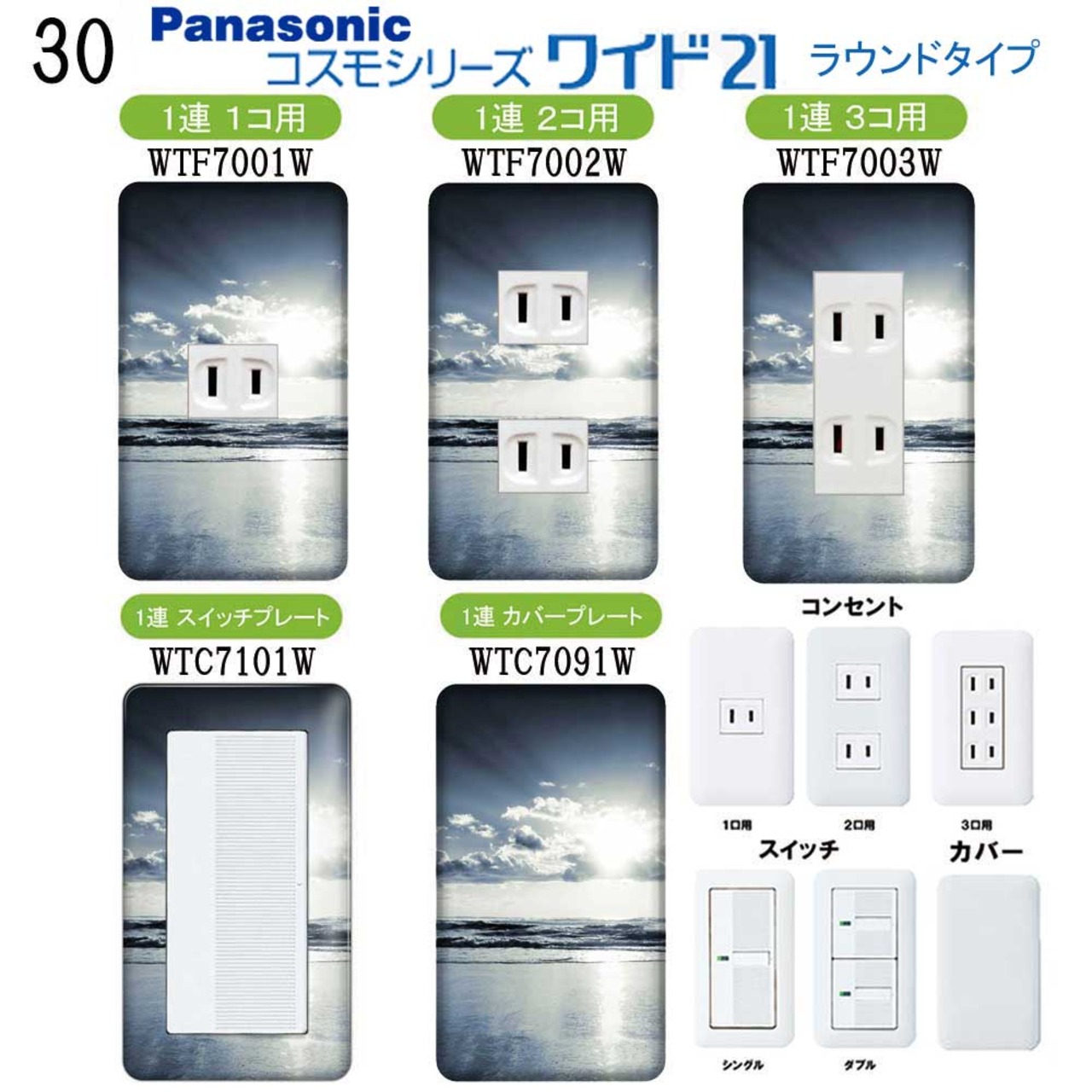 Photo 写真(空) 30番 パナソニック 【コスモシリーズワイド21】 1連 コンセントプレート スイッチプレート