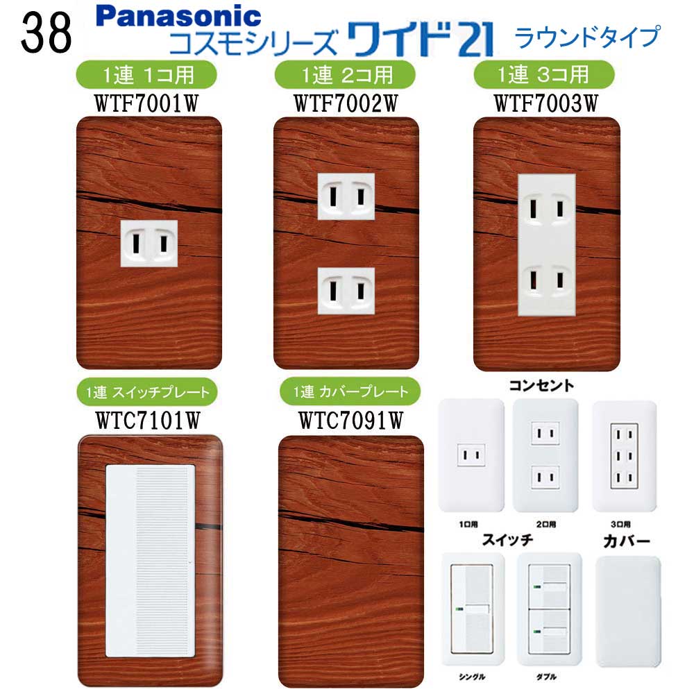 木目調柄 プレミアムウッド(ブラウン) 38番 パナソニック 【コスモシリーズワイド21】 1連 コンセントプレート スイッチプレート