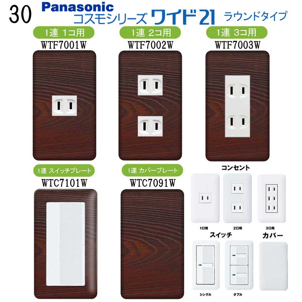木目調柄 プレミアムウッド(ダークブラウン) 30番 パナソニック 【コスモシリーズワイド21】 1連 コンセントプレート スイッチプレート