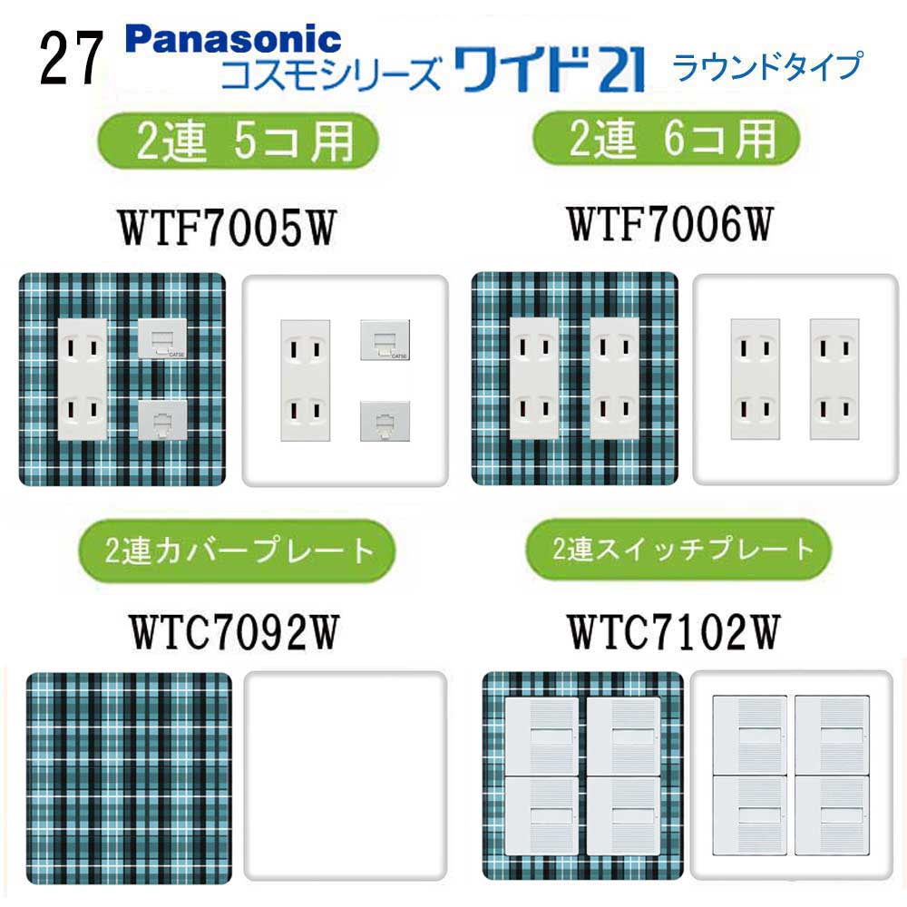 チェック柄 27番 パナソニック 【コスモシリーズワイド21】 2連 コンセントプレート スイッチプレート