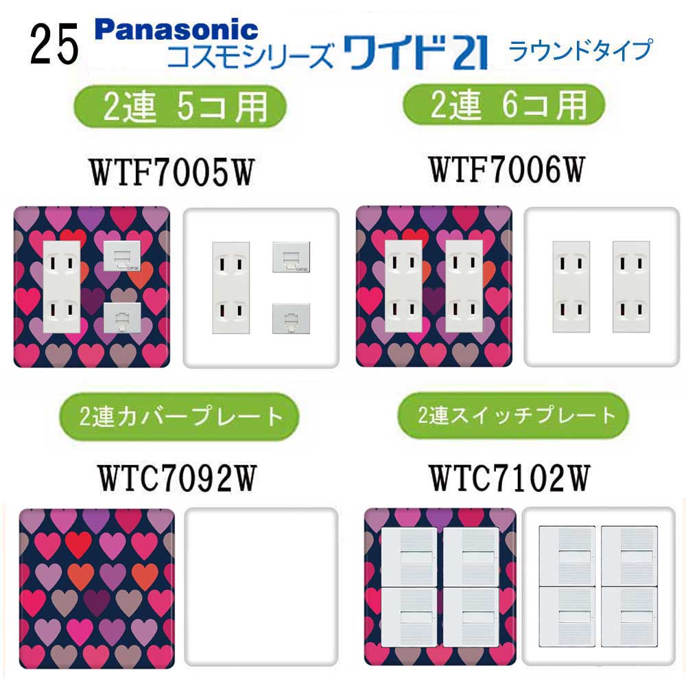 ハート柄(カラフル柄) 25番 パナソニック 【コスモシリーズワイド21】 2連 コンセントプレート スイッチプレート