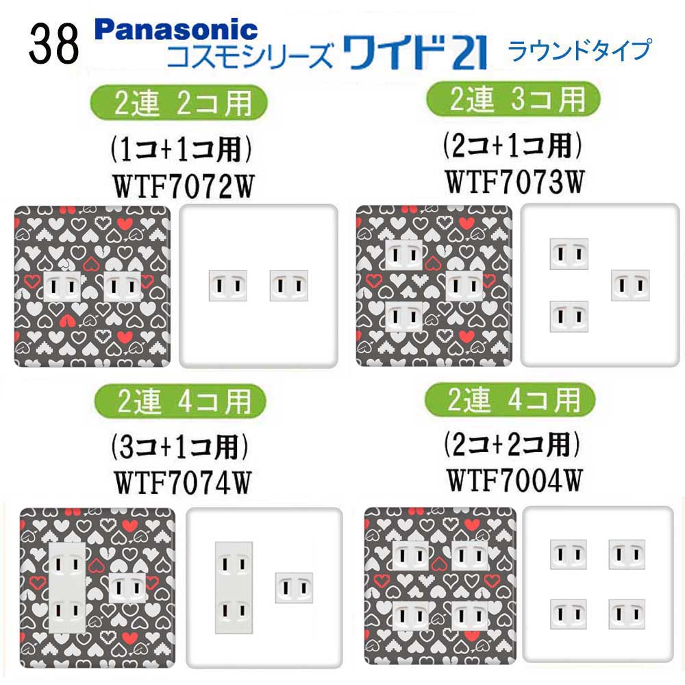 ハート柄(カラフル柄) 38番 パナソニック 【コスモシリーズワイド21】 2連 コンセントプレート スイッチプレート