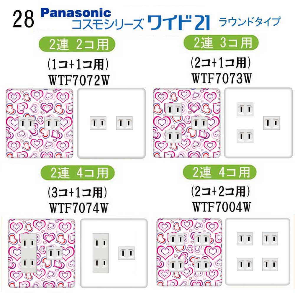 ハート柄(ポップ柄) 28番 パナソニック 【コスモシリーズワイド21】 2連 コンセントプレート スイッチプレート
