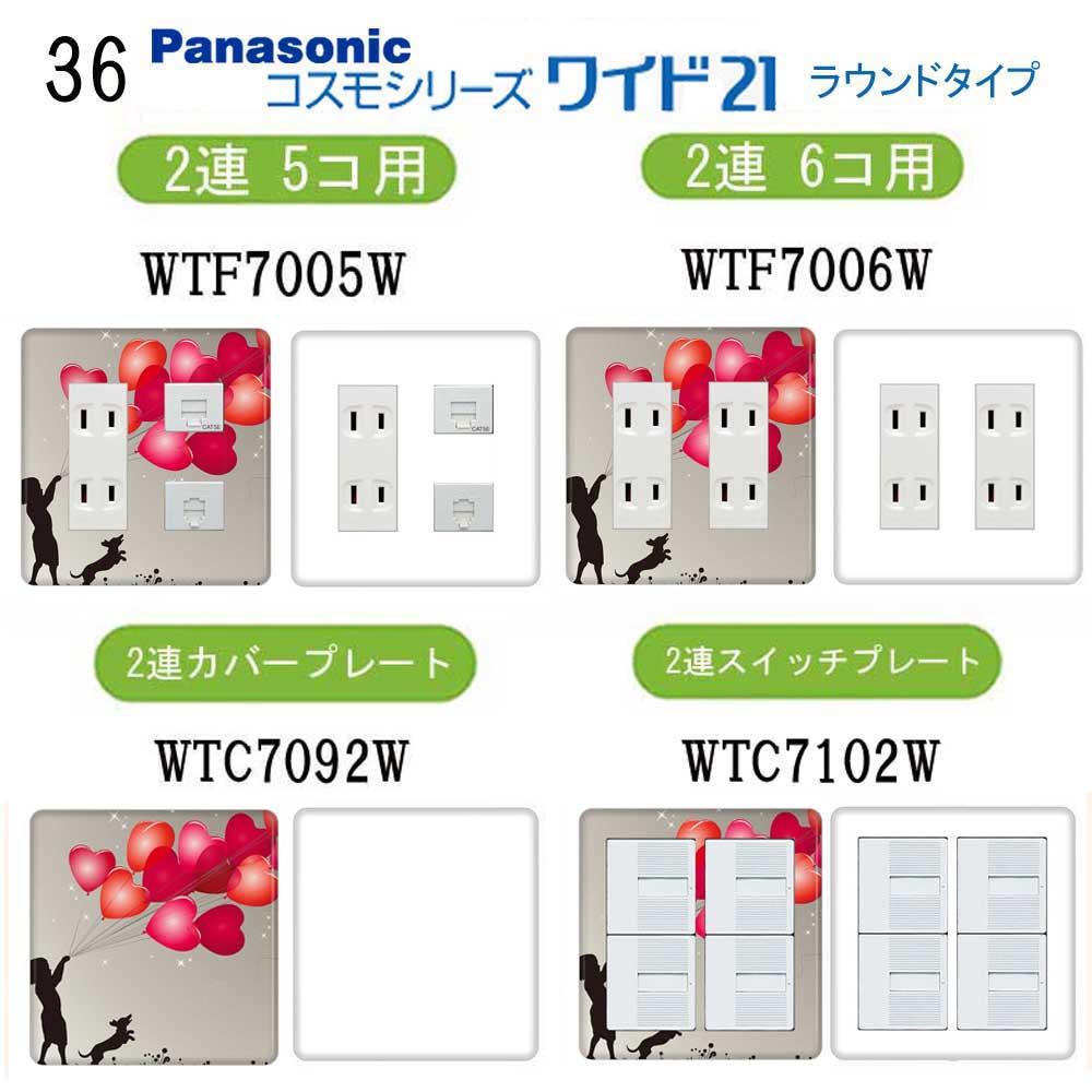 ハート柄(ポップ柄) 36番 パナソニック 【コスモシリーズワイド21】 2連 コンセントプレート スイッチプレート