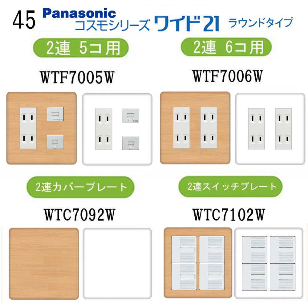 木目調柄 プレミアムウッド(ライトベージュ) 45番 パナソニック 【コスモシリーズワイド21】 2連 コンセントプレート スイッチプレート