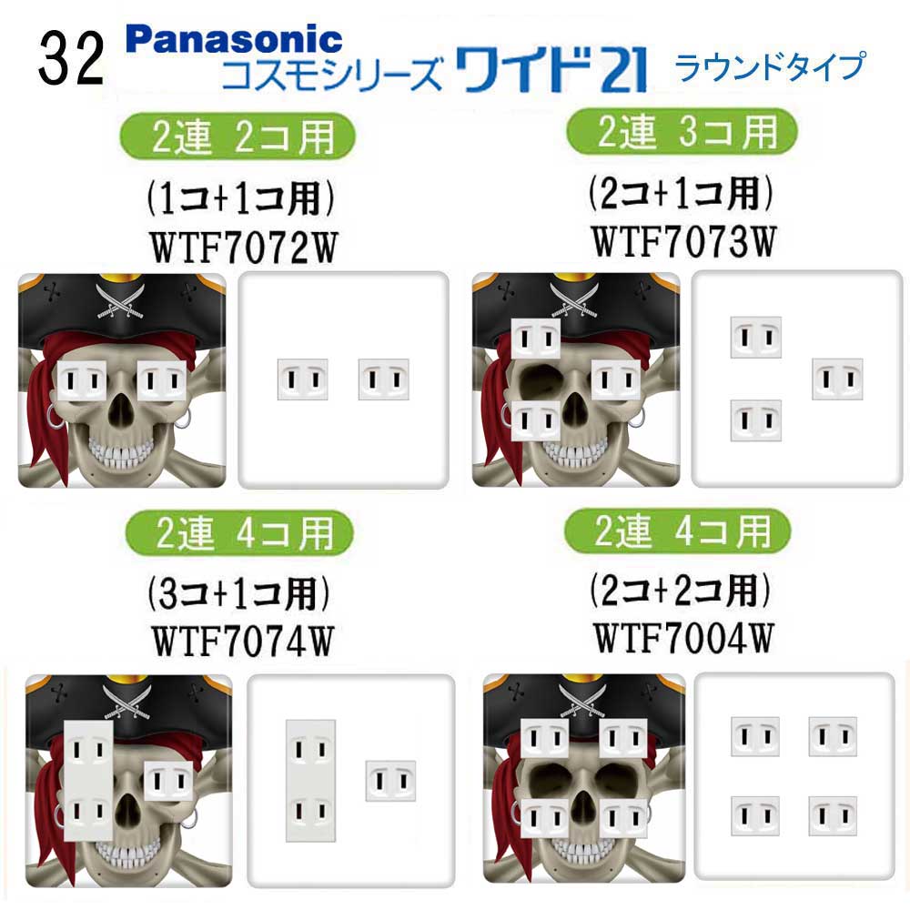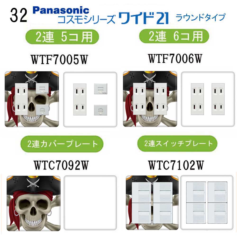 ドクロ柄 32番 パナソニック 【コスモシリーズワイド21】 2連 コンセントプレート スイッチプレート