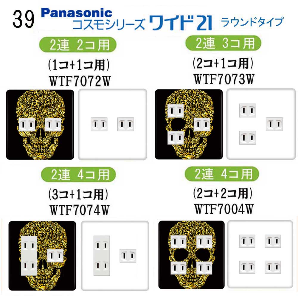 ドクロ柄 39番 パナソニック 【コスモシリーズワイド21】 2連 コンセントプレート スイッチプレート