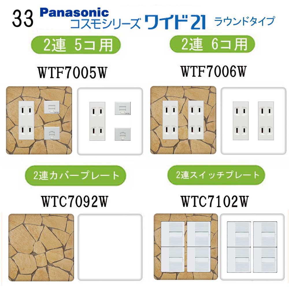 石目調(北欧モダン柄) 33番 パナソニック 【コスモシリーズワイド21】 2連 コンセントプレート スイッチプレート