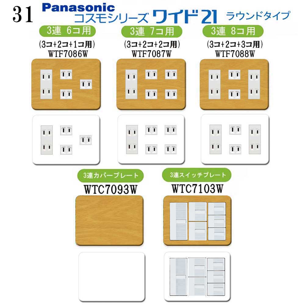 木目調柄 プレミアムウッド (ナチュラル) 31番 パナソニック 【コスモワイドシリーズ21】3連 コンセントプレート スイッチプレート