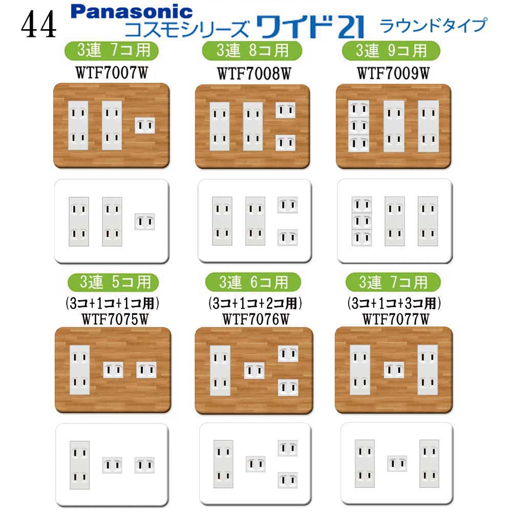 木目調柄 プレミアムウッド (ナチュラル) 44番 パナソニック 【コスモワイドシリーズ21】3連 コンセントプレート スイッチプレート