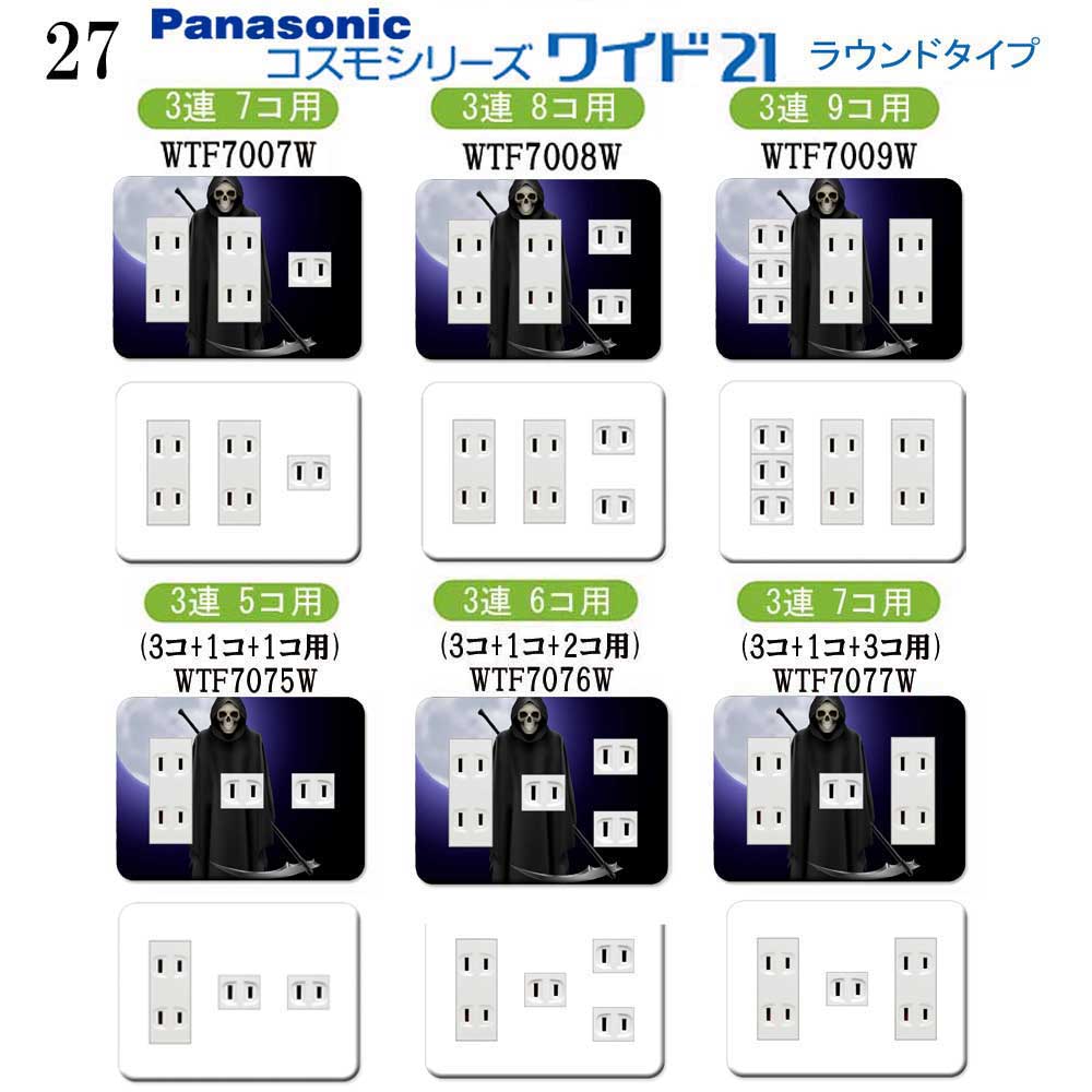 ドクロ柄 27番 パナソニック 【コスモワイドシリーズ21】3連 コンセントプレート スイッチプレート