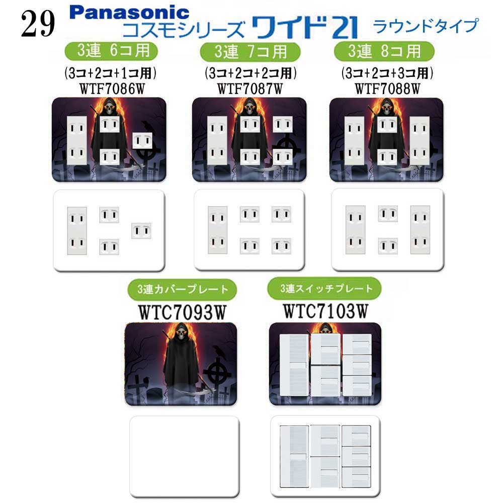ドクロ柄 29番 パナソニック 【コスモワイドシリーズ21】3連 コンセントプレート スイッチプレート