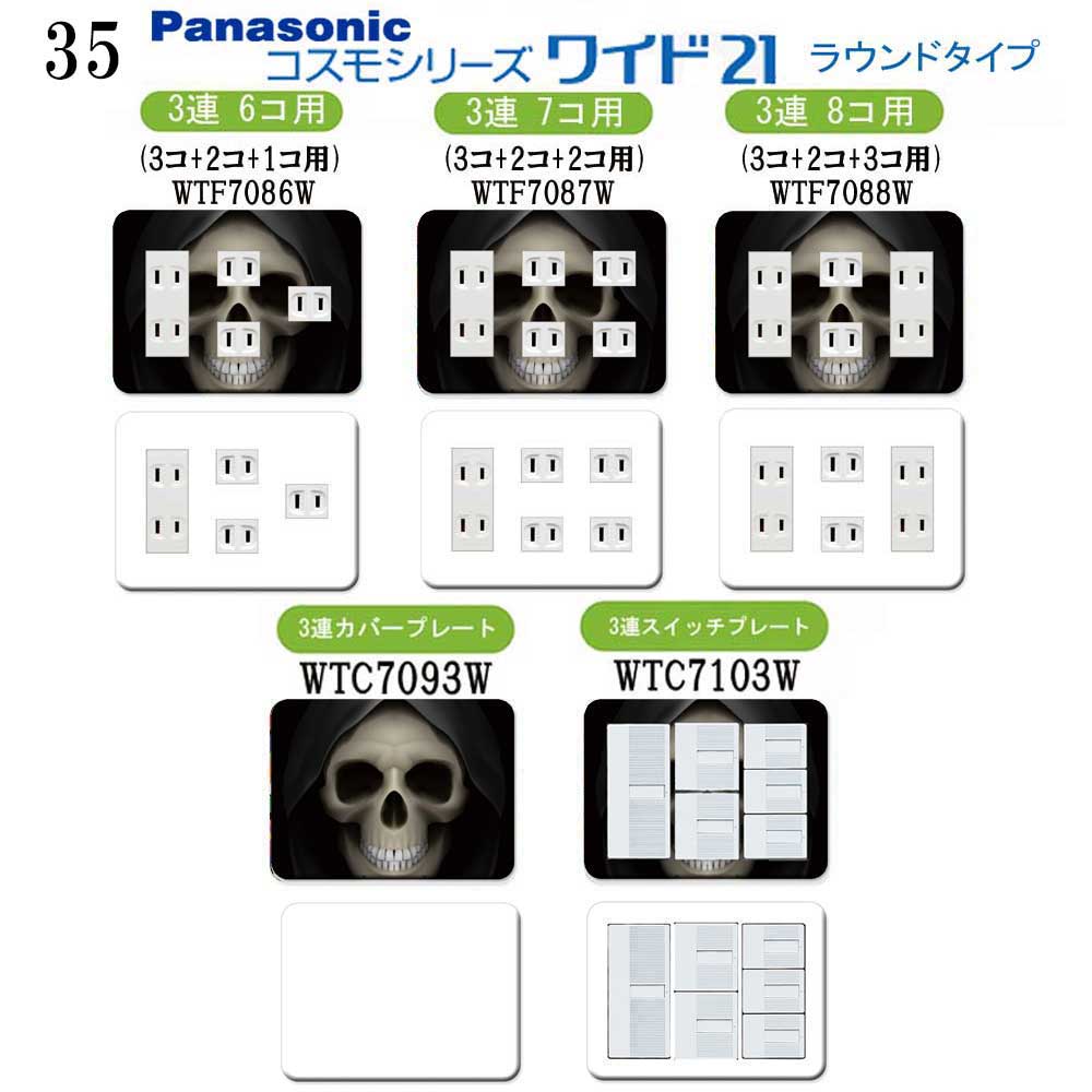 ドクロ柄 35番 パナソニック 【コスモワイドシリーズ21】3連 コンセントプレート スイッチプレート
