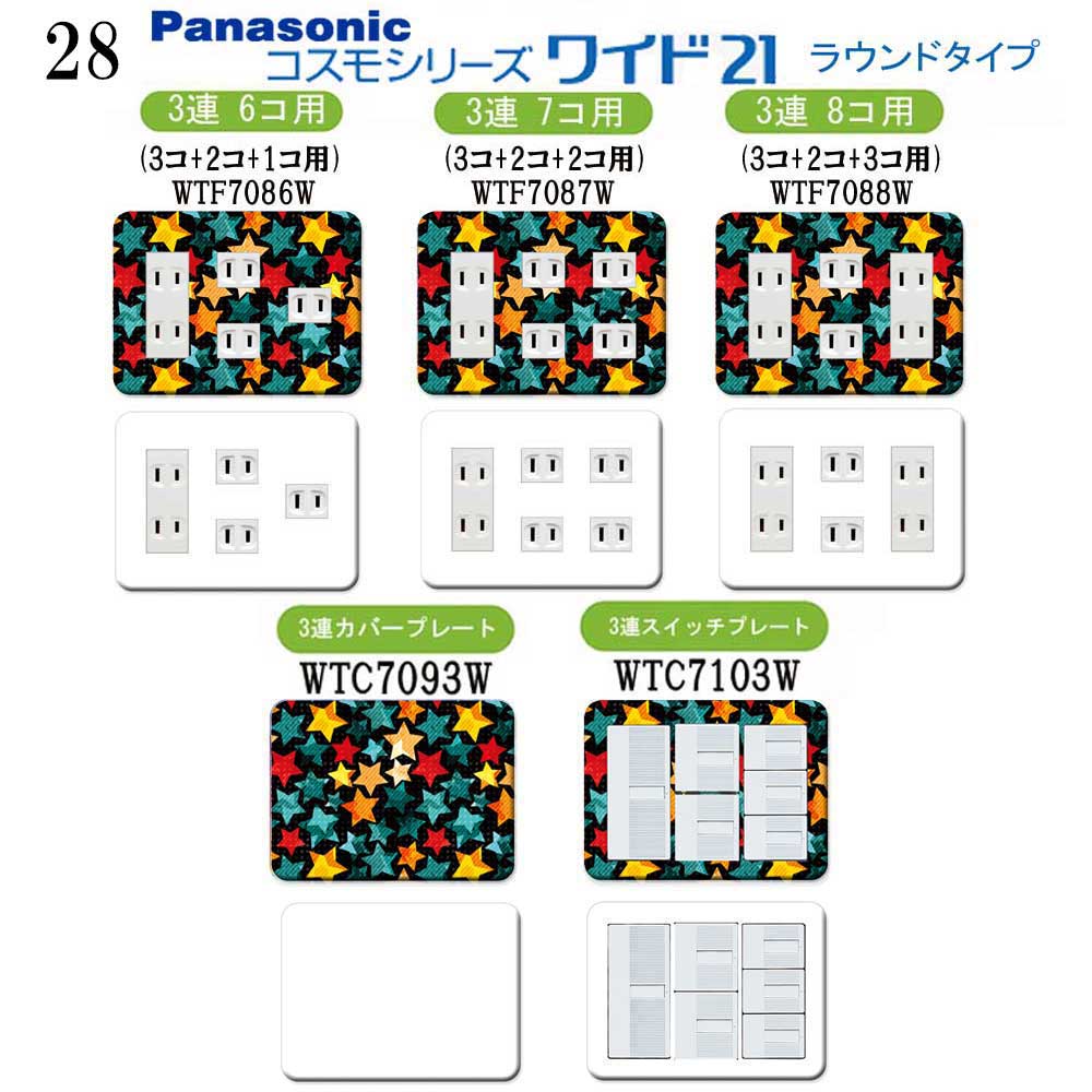 星柄 28番 パナソニック 【コスモワイドシリーズ21】3連 コンセントプレート スイッチプレート