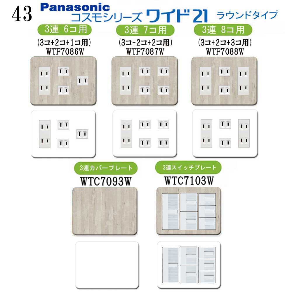 木目調柄 プレミアムウッド (ホワイト) 43番 パナソニック 【コスモワイドシリーズ21】3連 コンセントプレート スイッチプレート