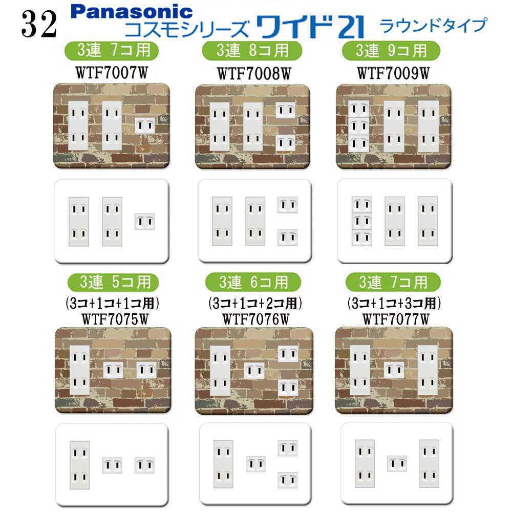 石目調 (レンガ柄) 32番 パナソニック 【コスモワイドシリーズ21】3連 コンセントプレート スイッチプレート