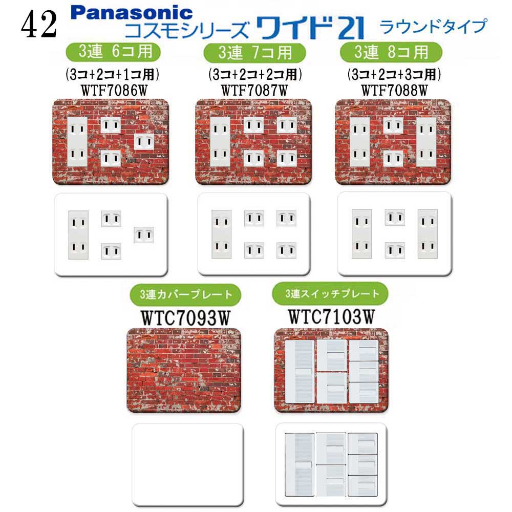 石目調 (レンガ柄) 42番 パナソニック 【コスモワイドシリーズ21】3連 コンセントプレート スイッチプレート