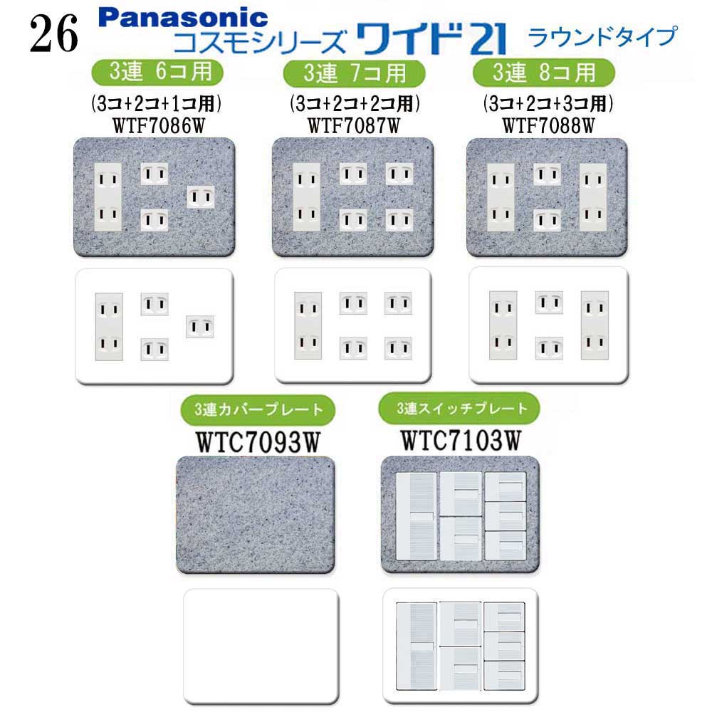 石目調 (タイル柄) 26番 パナソニック【コスモワイドシリーズ21】3連 コンセントプレート スイッチプレート
