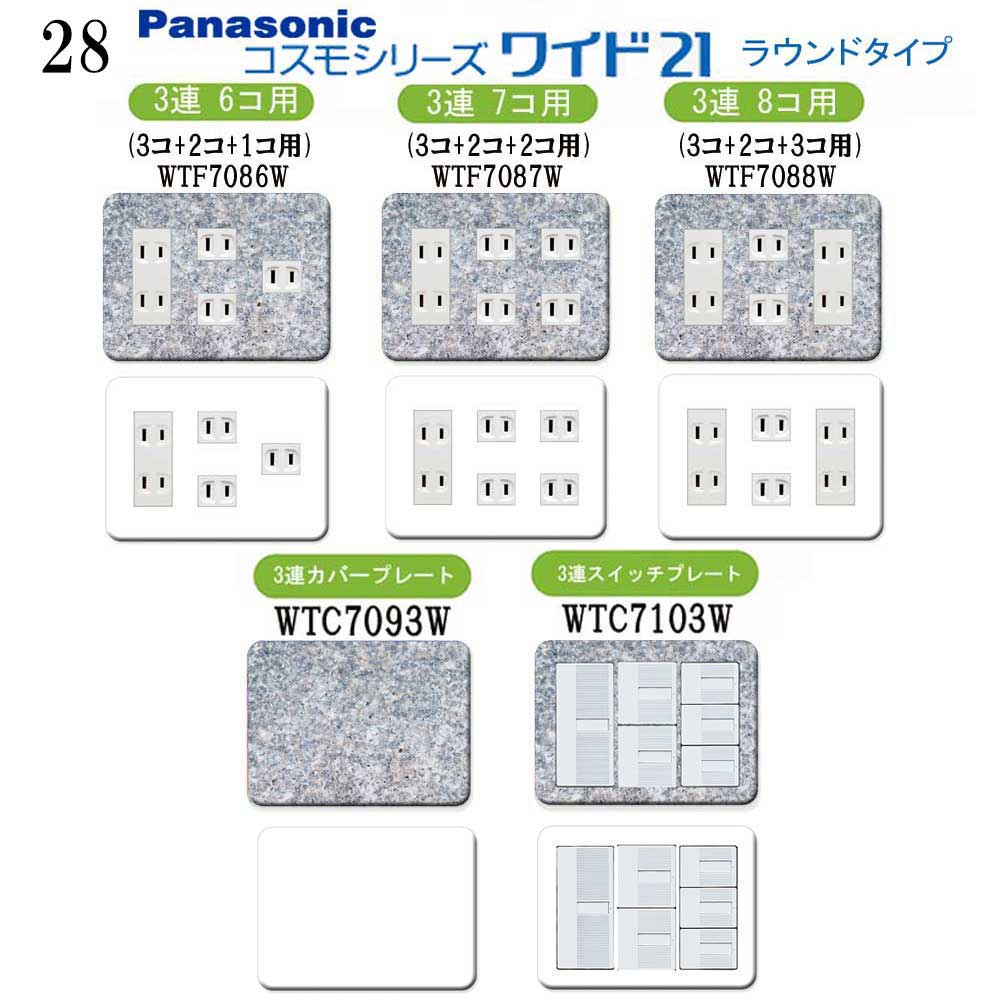 石目調 (タイル柄) 28番 パナソニック【コスモワイドシリーズ21】3連 コンセントプレート スイッチプレート