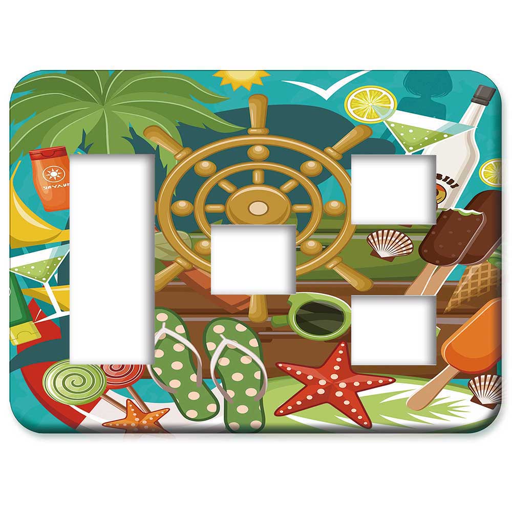 サマー柄 43番 パナソニック【コスモワイドシリーズ21】3連 コンセントプレート スイッチプレート