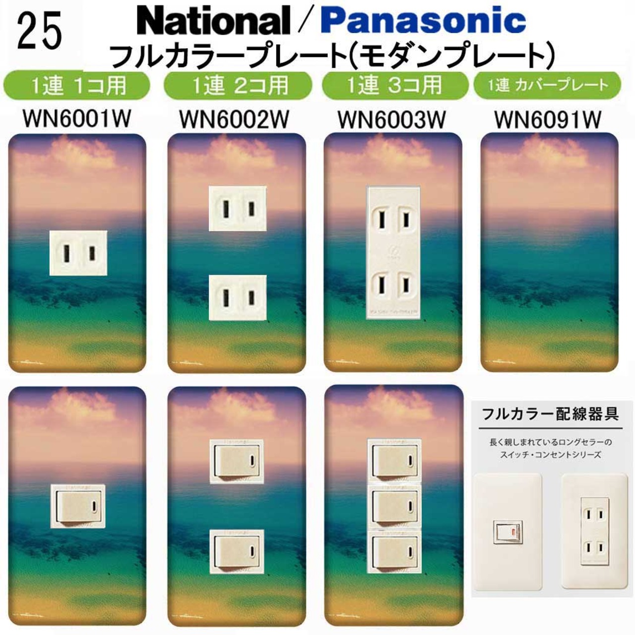 Photo 写真(海) 25番 パナソニック 【フルカラー(モダン)プレート】1連 コンセントプレート スイッチプレート