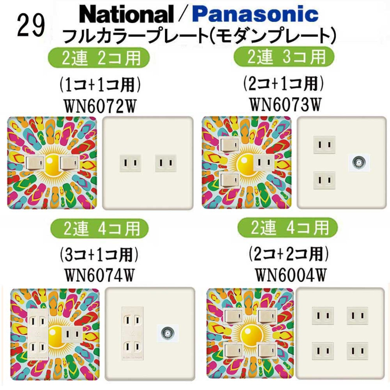 カラフル柄 29番 パナソニック 【フルカラー(モダン)プレート】2連 コンセントプレート スイッチプレート