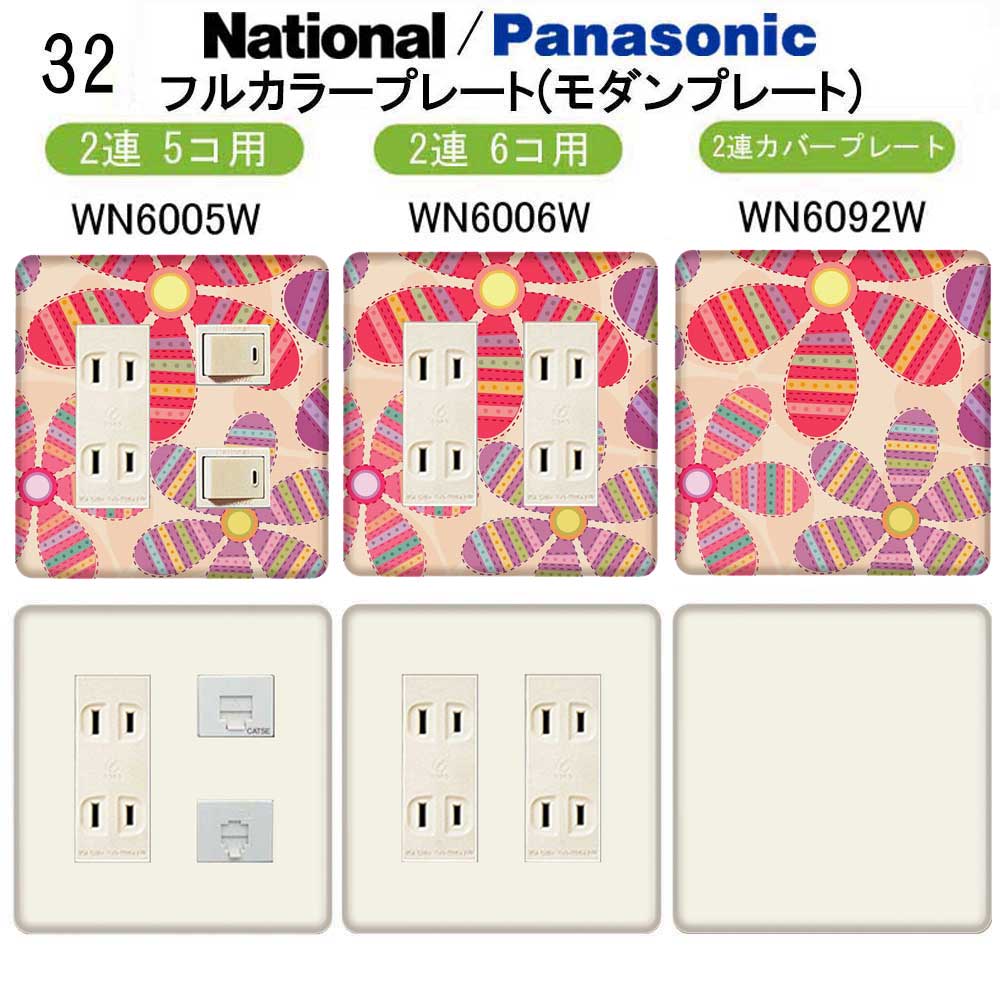 花柄 フラワー(キュート柄) 32番 パナソニック 【フルカラー(モダン)プレート】2連 コンセントプレート スイッチプレート