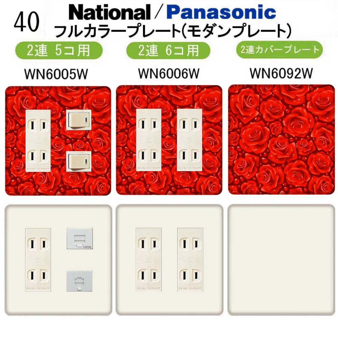 花柄 フラワー(スタイリッシュ柄) 40番 パナソニック 【フルカラー(モダン)プレート】2連 コンセントプレート スイッチプレート