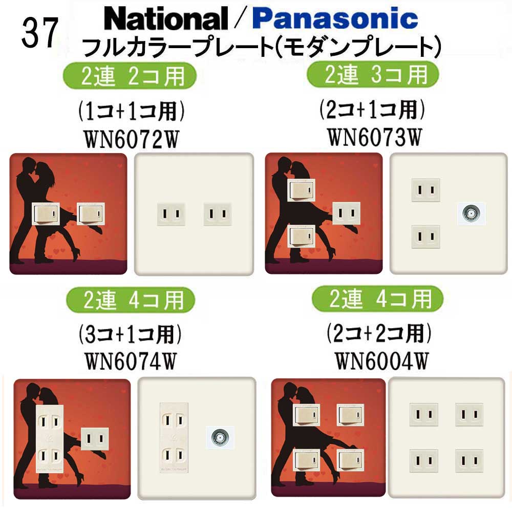 ハート柄(ポップ柄) 37番 パナソニック 【フルカラー(モダン)プレート】 2連 コンセントプレート スイッチプレート