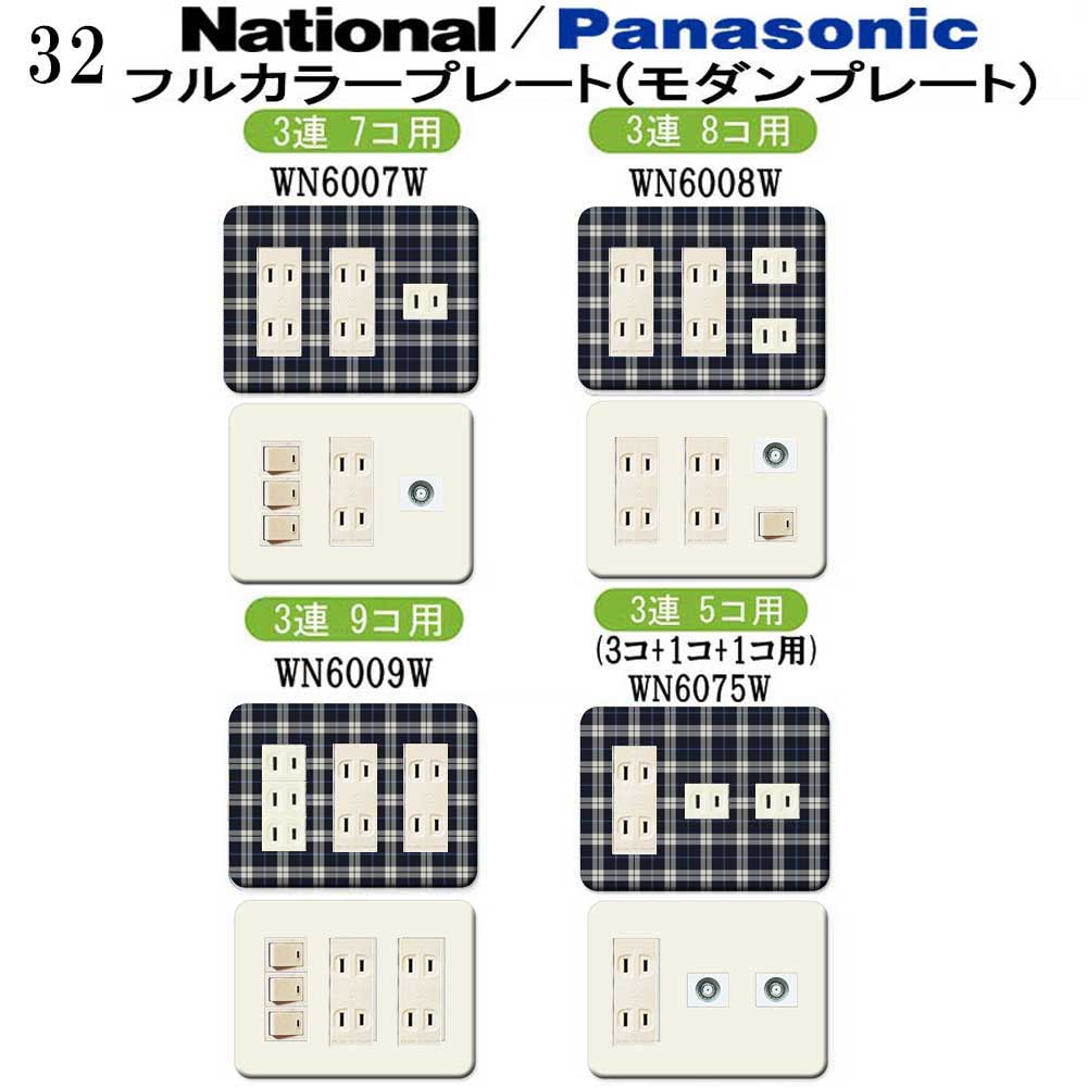チェック柄 32番 パナソニック 【フルカラー(モダン)プレート】 3連 コンセントプレート スイッチプレート