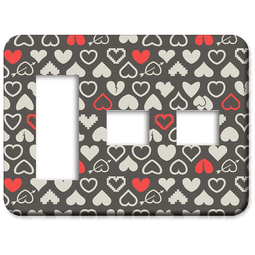 ハート柄(カラフル柄) 38番 パナソニック 【フルカラー(モダン)プレート】 3連 コンセントプレート スイッチプレート