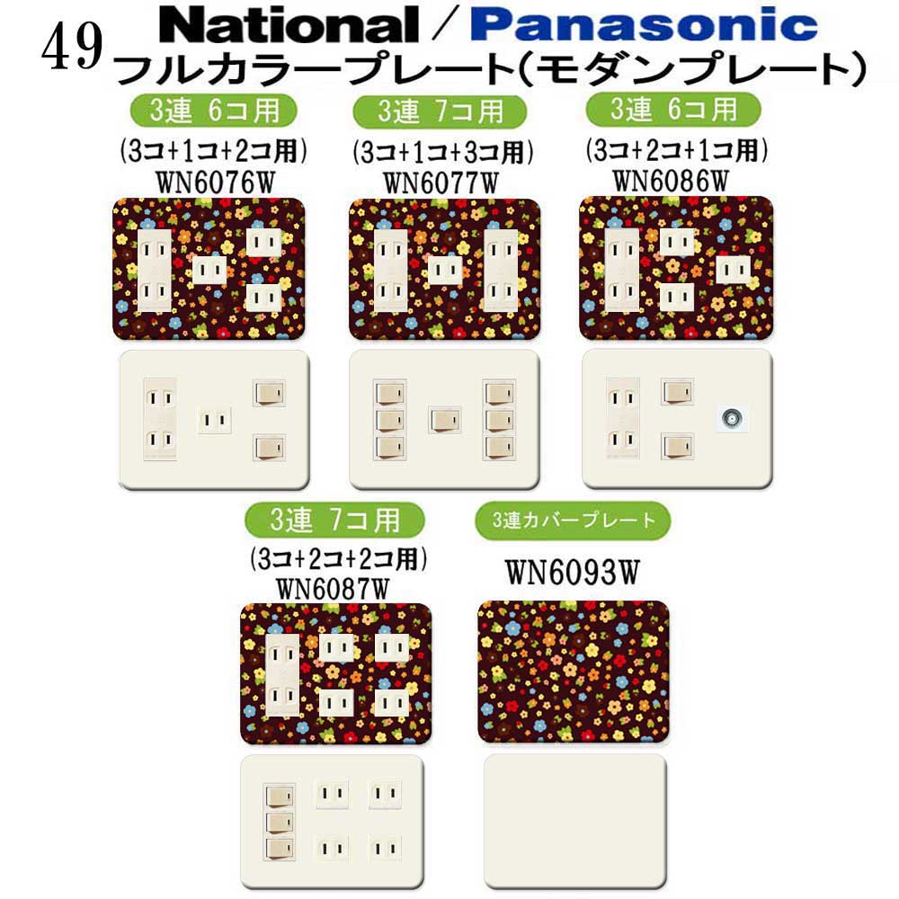 花柄 フラワー(キュート柄) 49番 パナソニック 【フルカラー(モダン)プレート】 3連 コンセントプレート スイッチプレート