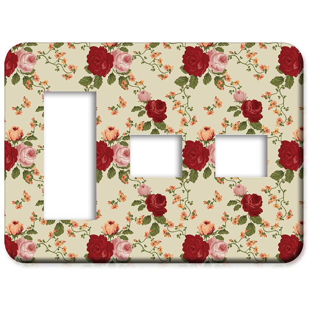 花柄 フラワー(エレガント柄) 27番 パナソニック 【フルカラー(モダン)プレート】 3連 コンセントプレート スイッチプレート