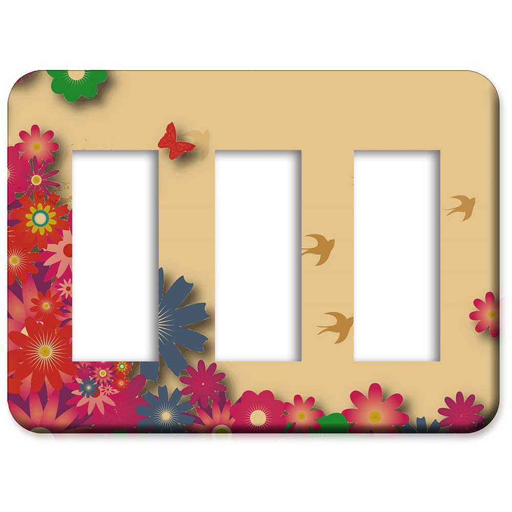 花柄 フラワー(エレガント柄) 48番 パナソニック 【フルカラー(モダン)プレート】 3連 コンセントプレート スイッチプレート