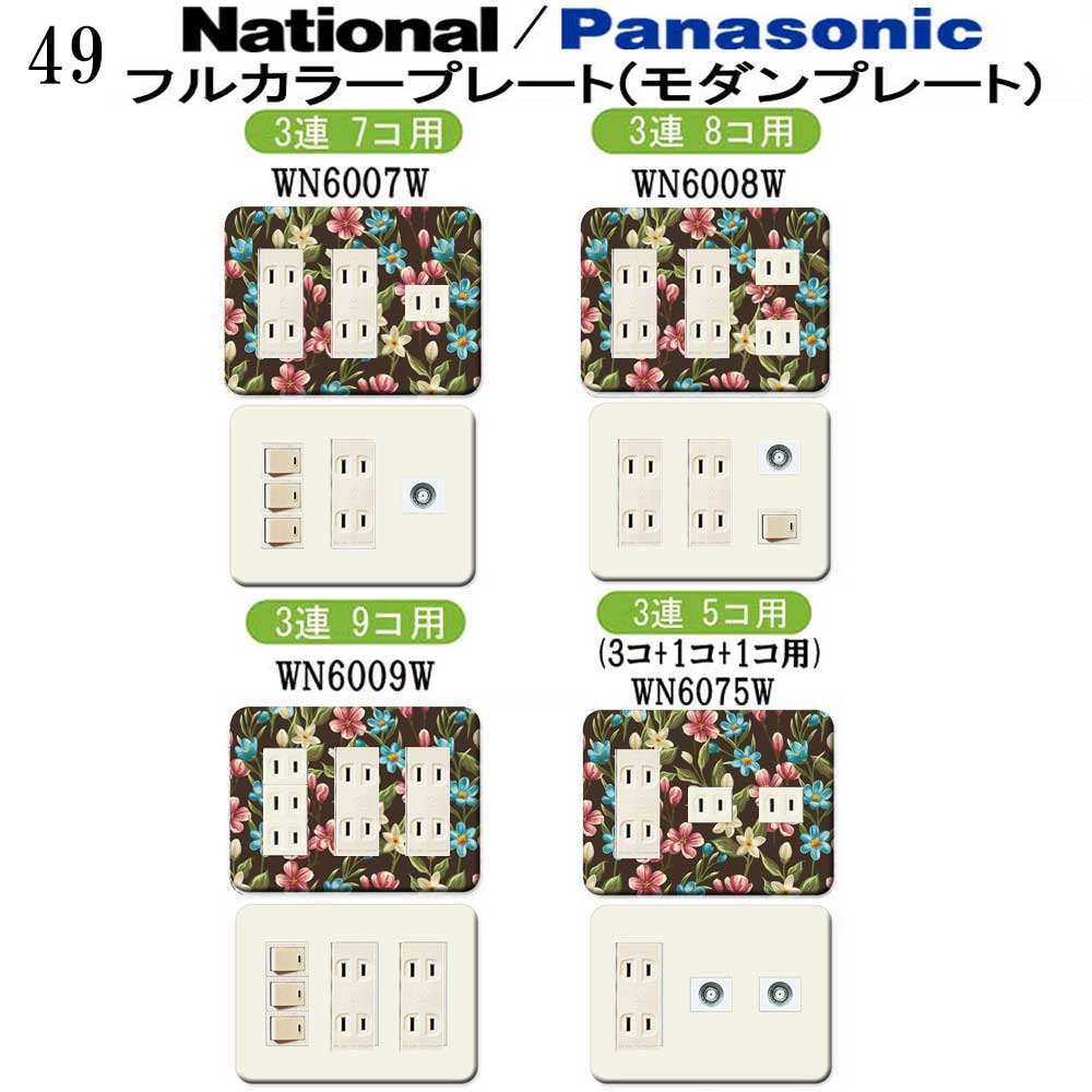 花柄 フラワー(エレガント柄) 49番 パナソニック 【フルカラー(モダン)プレート】 3連 コンセントプレート スイッチプレート