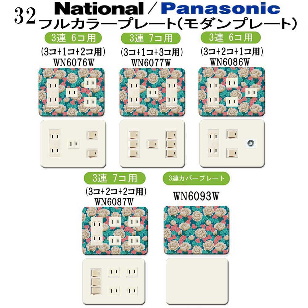 花柄 フラワー(スタイリッシュ柄) 32番 パナソニック 【フルカラー(モダン)プレート】 3連 コンセントプレート スイッチプレート