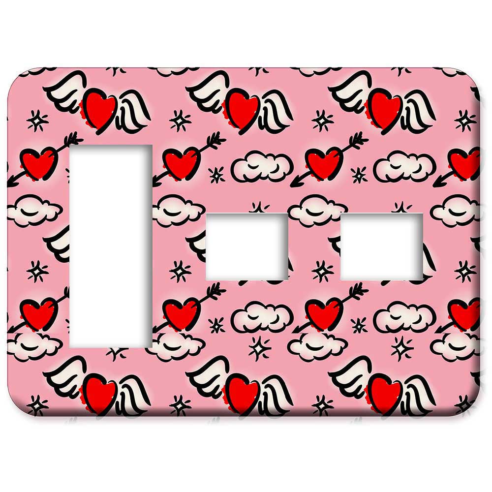 ハート柄(ポップ柄) 32番 パナソニック 【フルカラー(モダン)プレート】 3連 コンセントプレート スイッチプレート