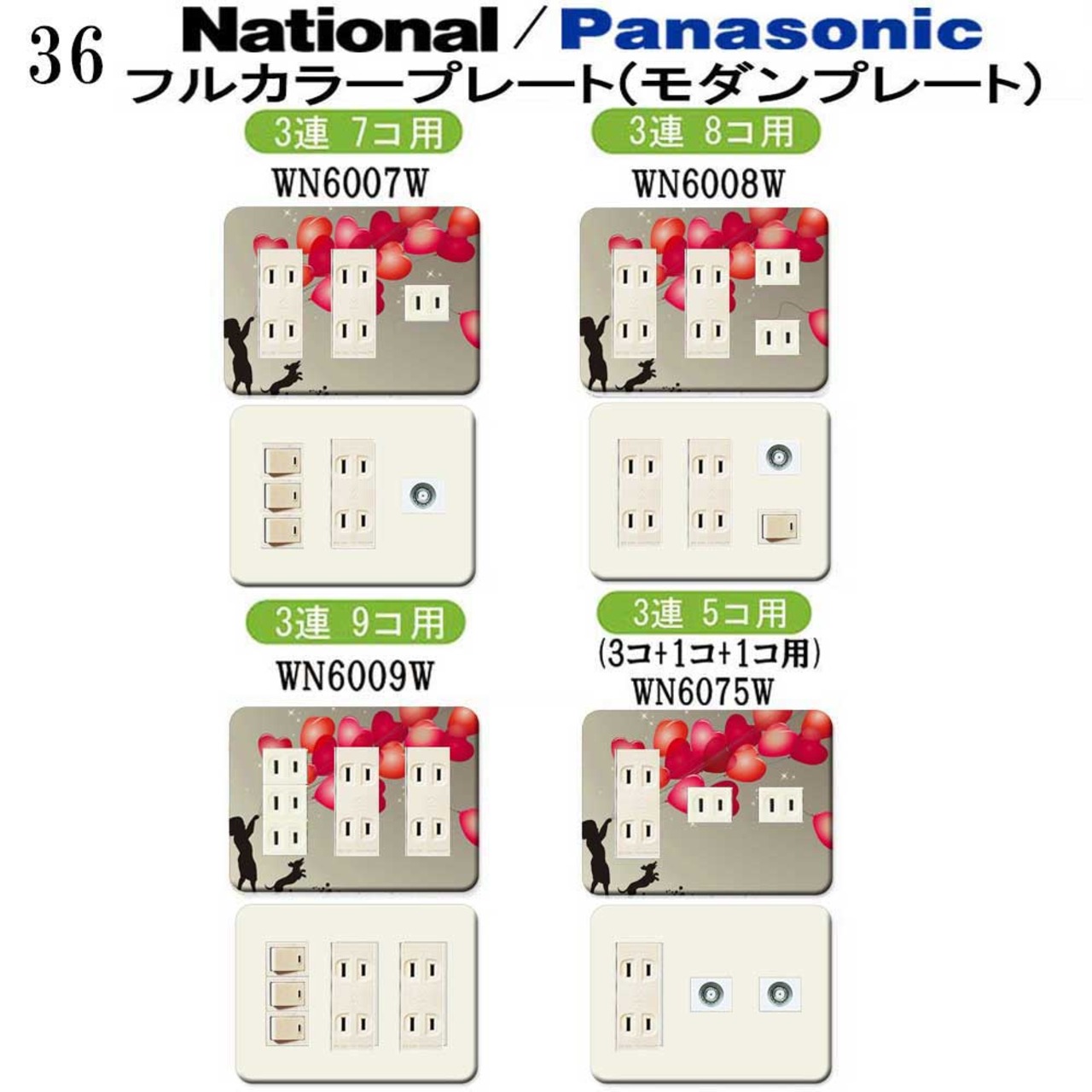 ハート柄(ポップ柄) 36番 パナソニック 【フルカラー(モダン)プレート】 3連 コンセントプレート スイッチプレート