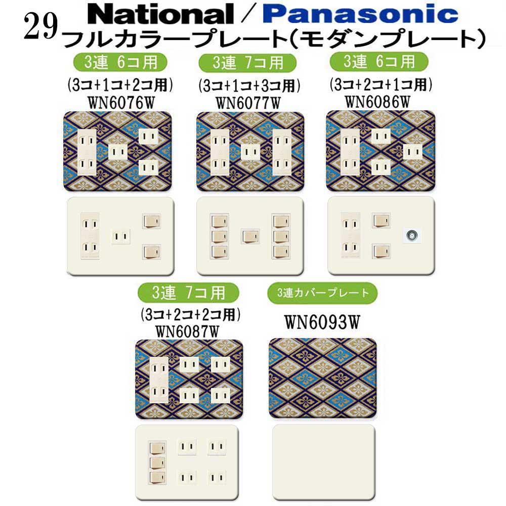 和調柄(和柄 日本風柄) 29番 パナソニック 【フルカラー(モダン)プレート】 3連 コンセントプレート スイッチプレート