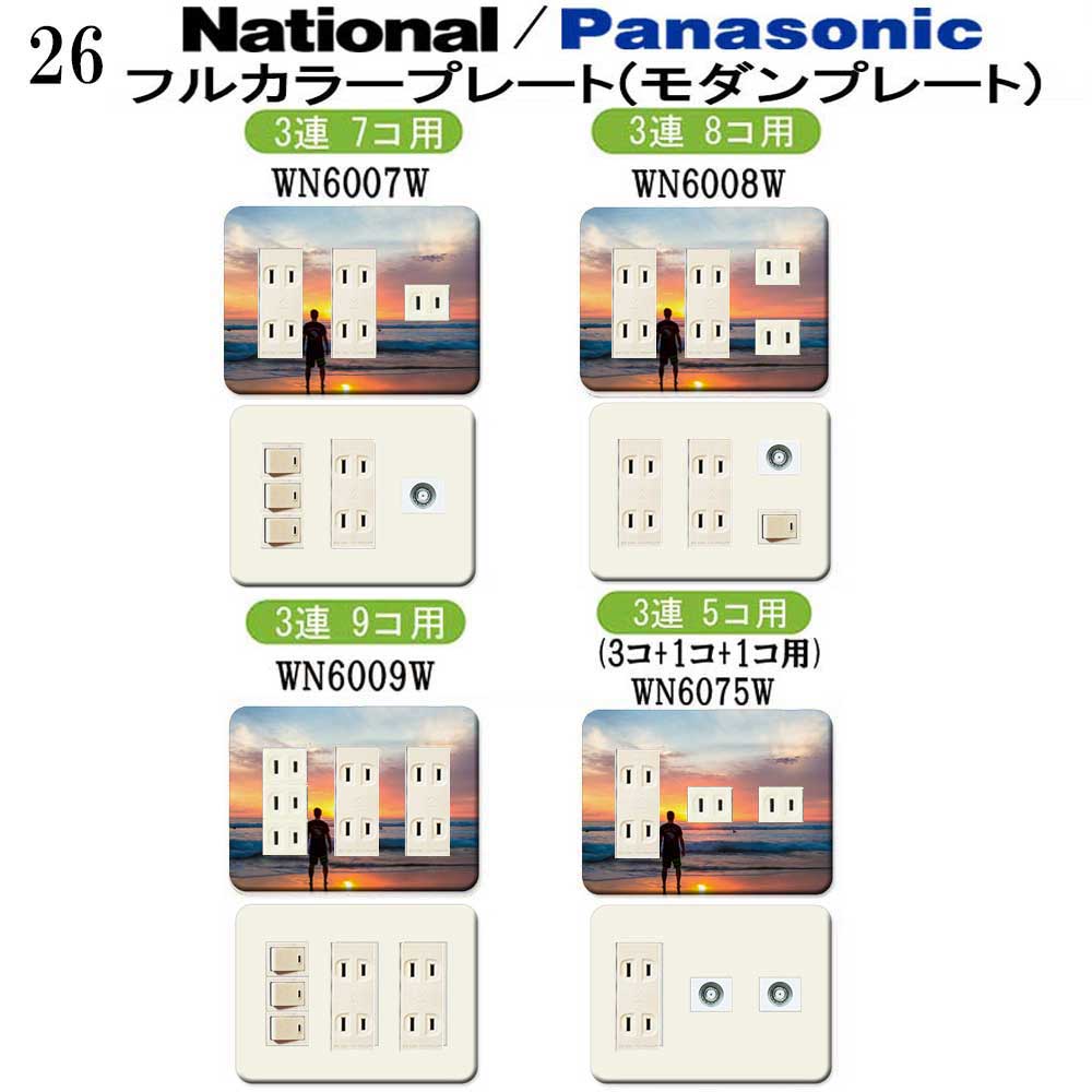 Photo 写真(ビーチ) 26番 パナソニック 【フルカラー(モダン)プレート】 3連 コンセントプレート スイッチプレート