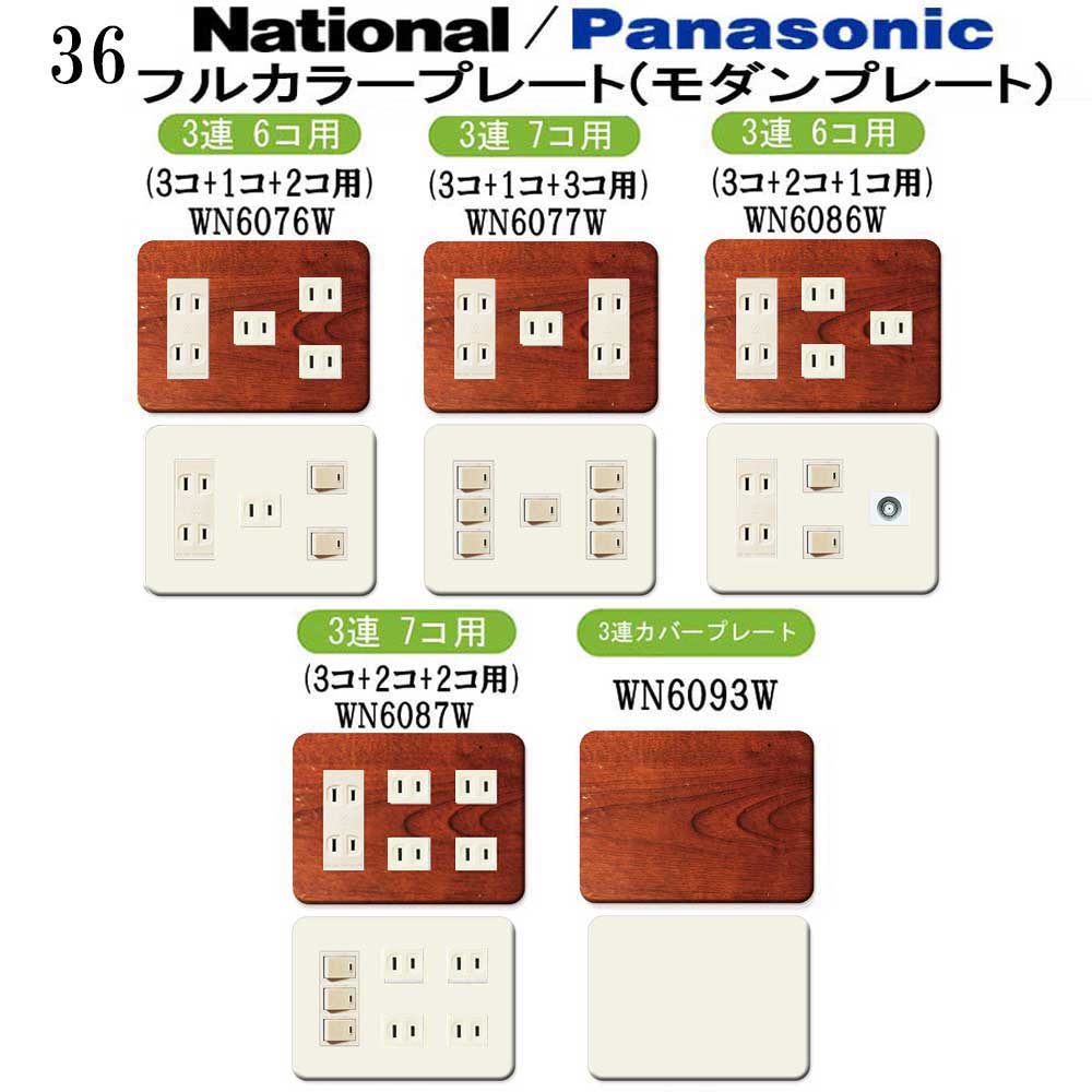 木目調柄 プレミアムウッド(ブラウン) 36番 パナソニック 【フルカラー(モダン)プレート】 3連 コンセントプレート スイッチプレート