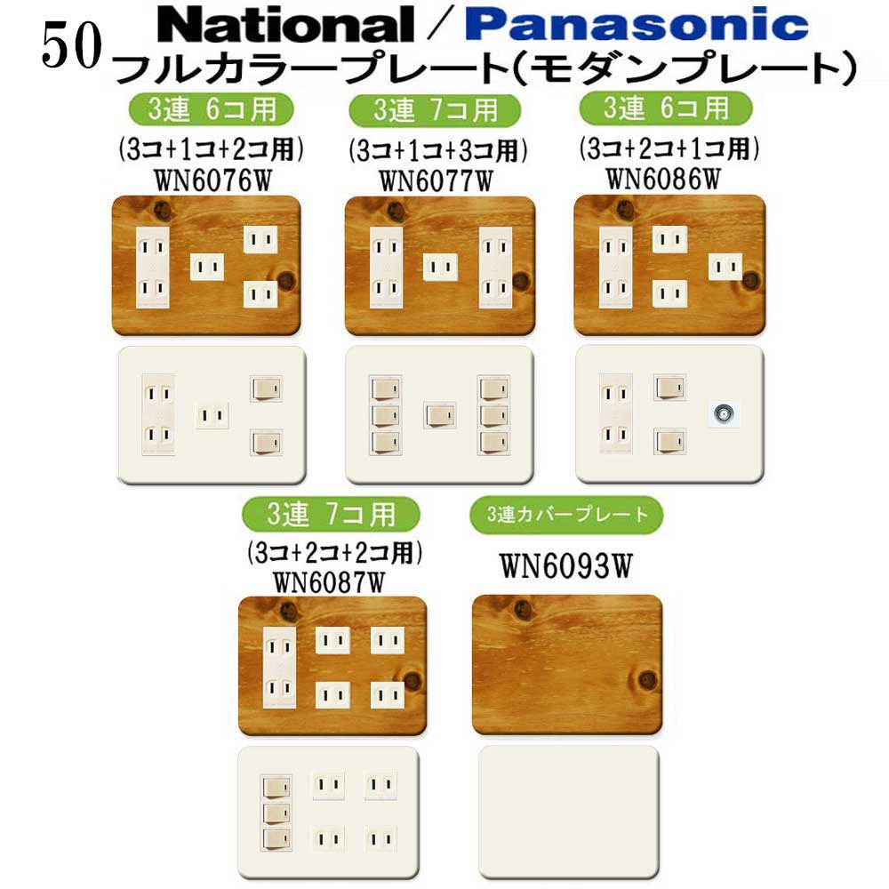 木目調柄 プレミアムウッド(ナチュラル) 50番 パナソニック 【フルカラー(モダン)プレート】 3連 コンセントプレート スイッチプレート