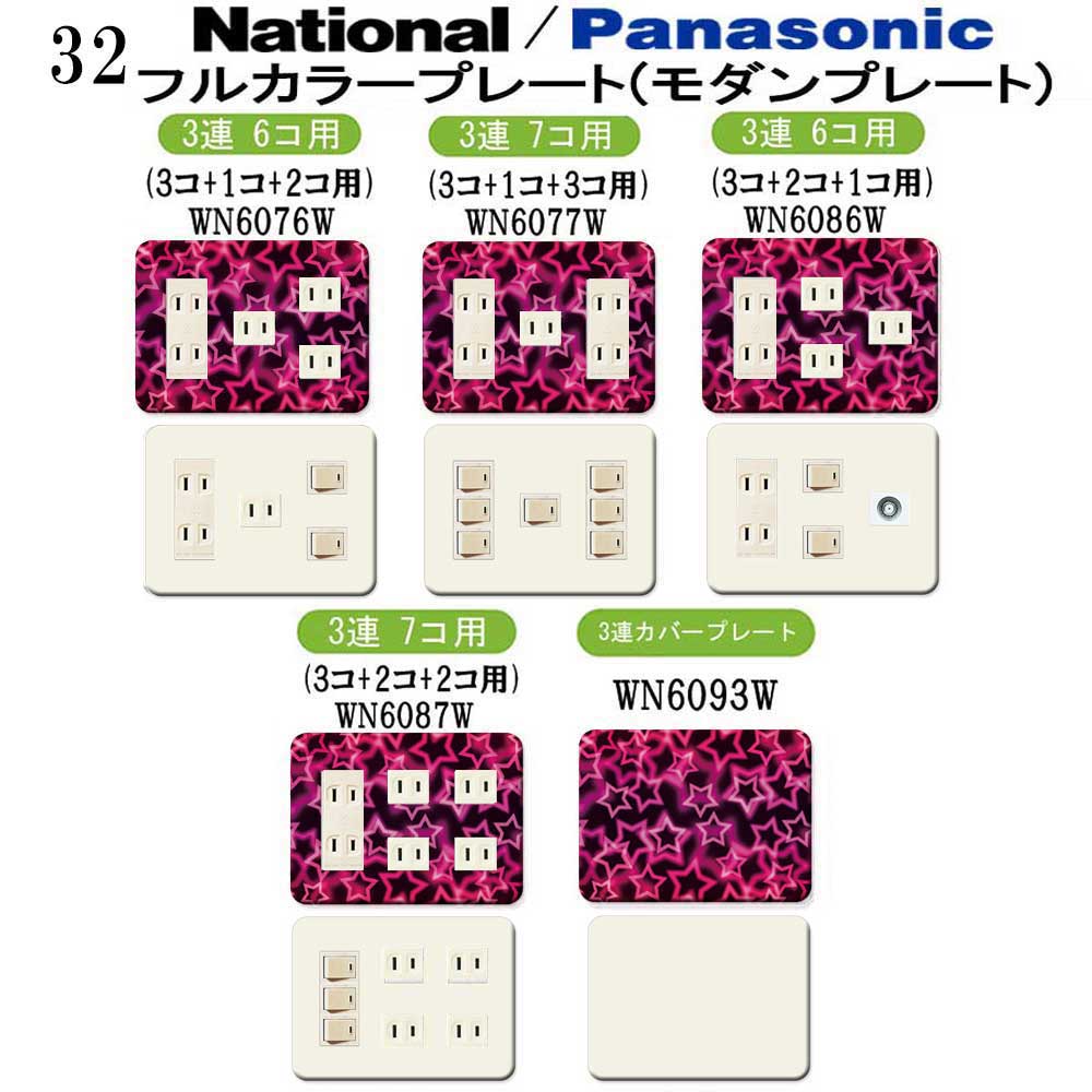 星柄 32番 パナソニック 【フルカラー(モダン)プレート】 3連 コンセントプレート スイッチプレート