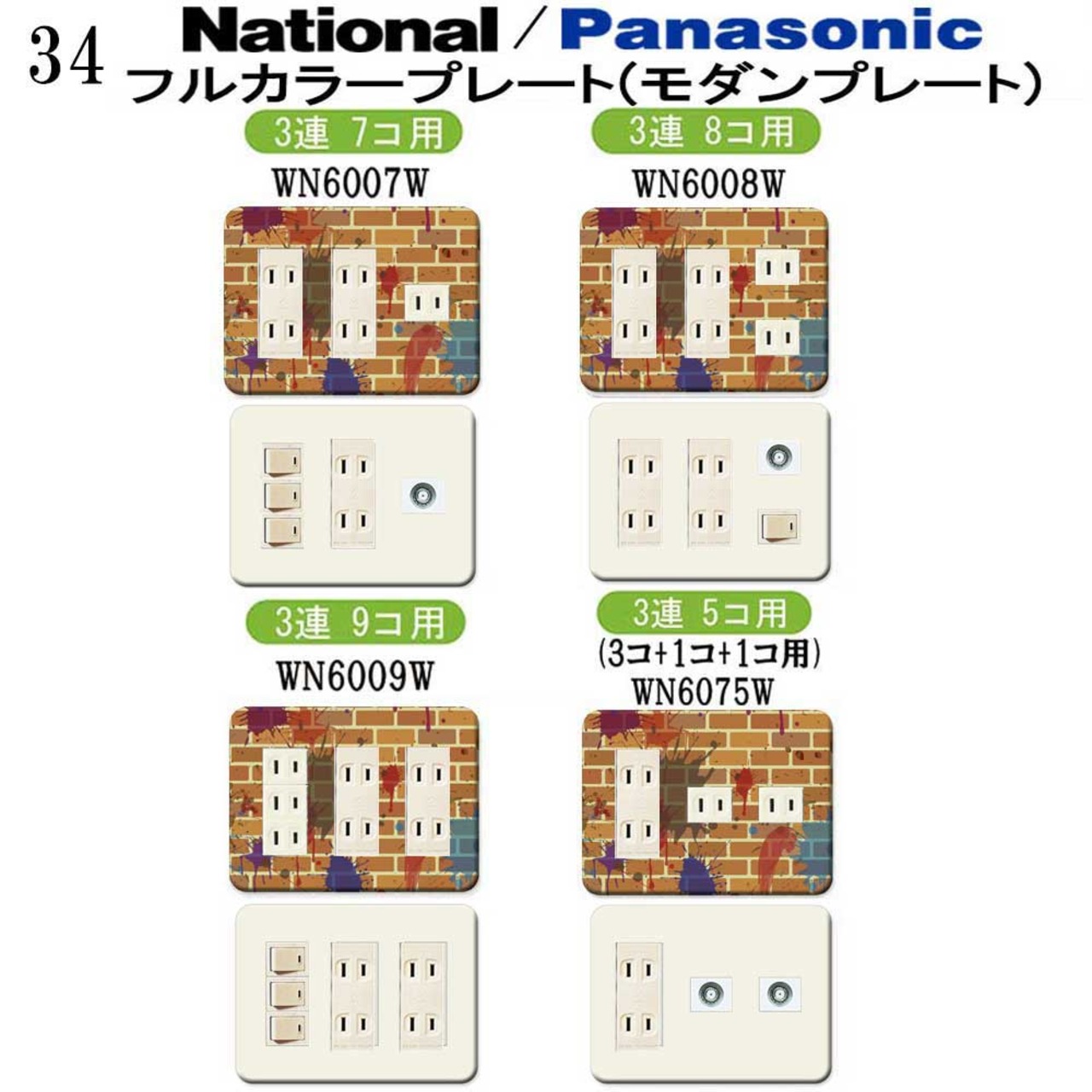 石目調(レンガ柄) 34番 パナソニック 【フルカラー(モダン)プレート】 3連 コンセントプレート スイッチプレート