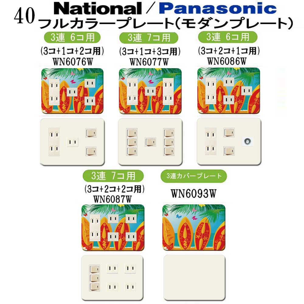 サマー柄 40番 パナソニック 【フルカラー(モダン)プレート】 3連 コンセントプレート スイッチプレート